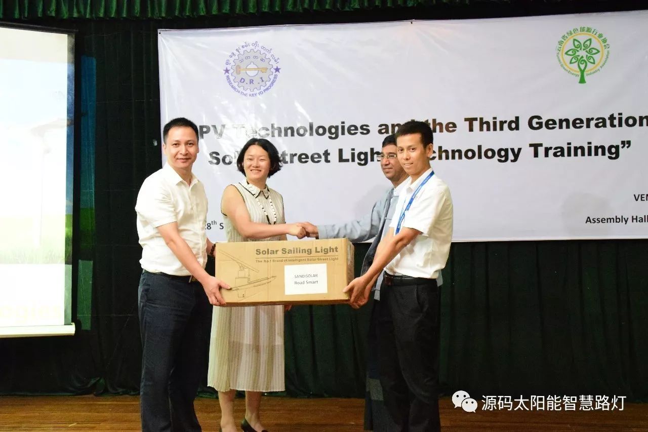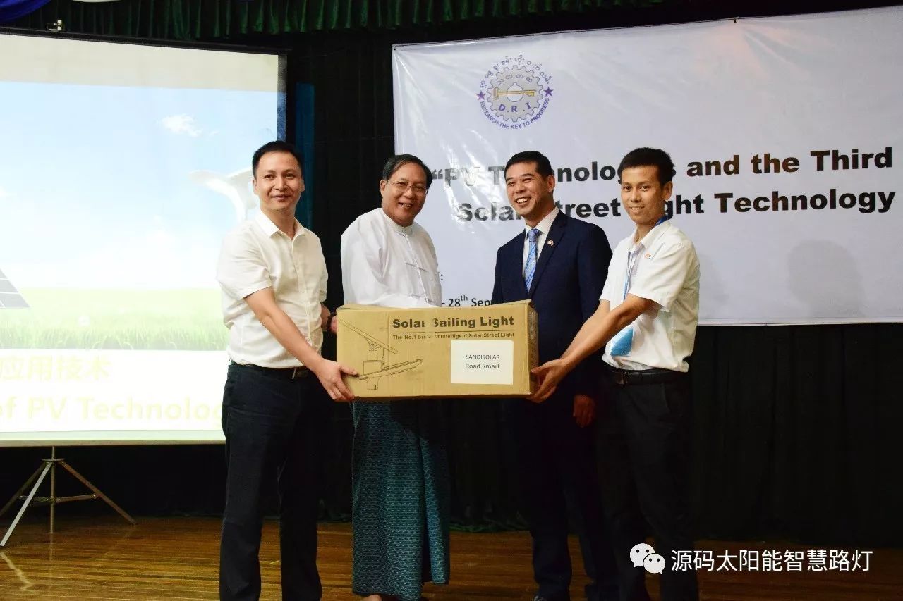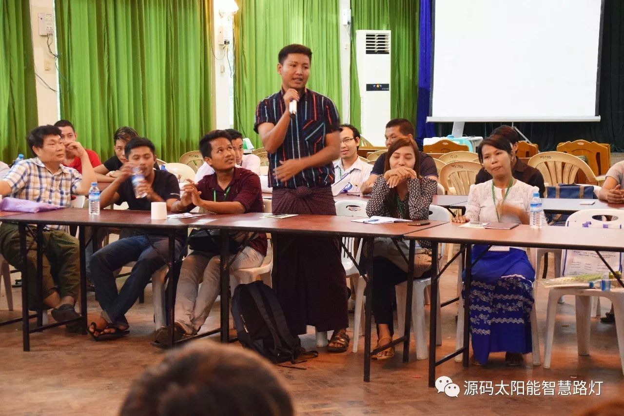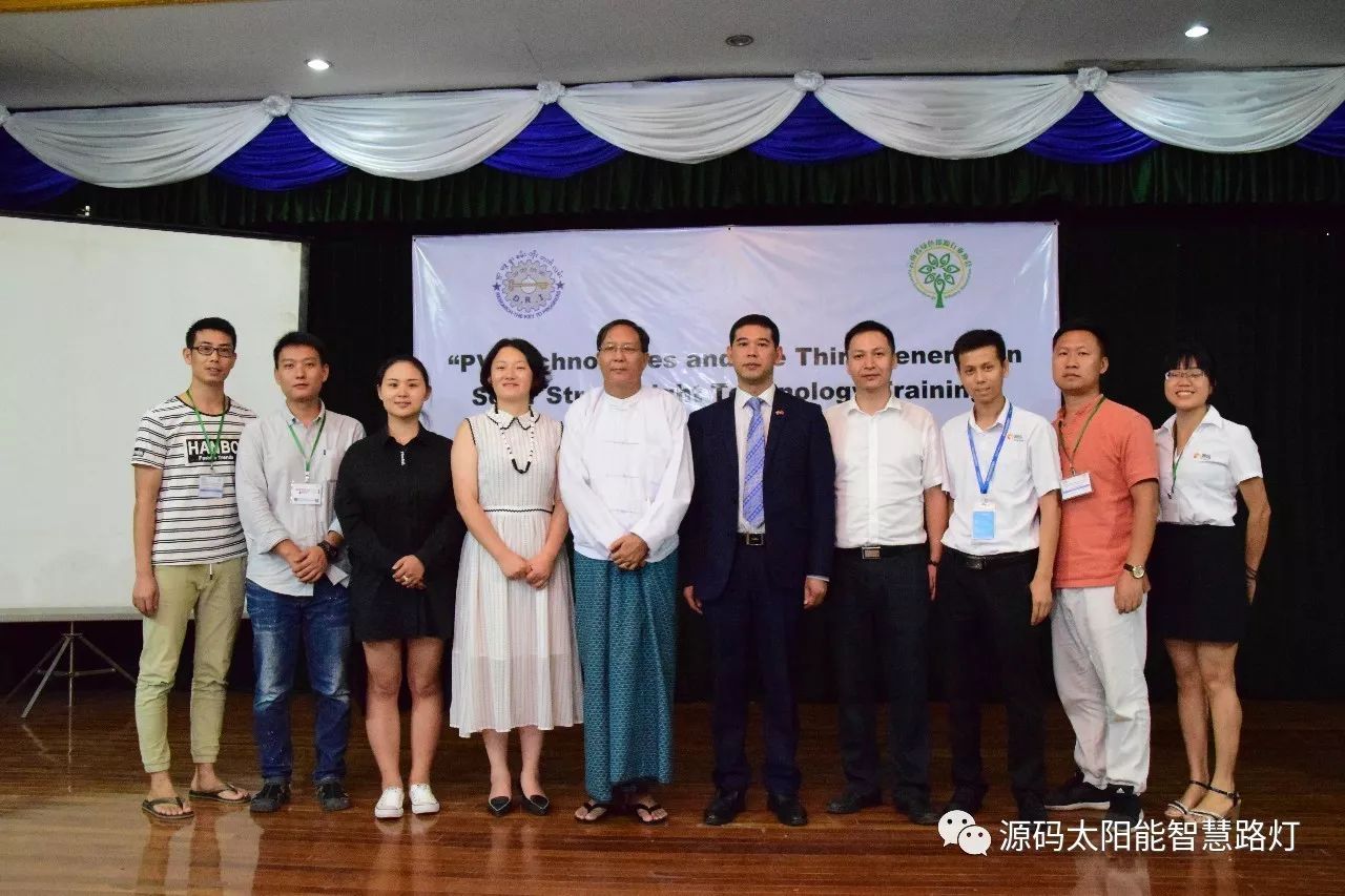 在培训会议后,大家对此次的培训综合内容及取得的效果进行了深入研讨,参与此次培训的能源部、政府部门的相关人员以及大学教授、企业代表都对此次培训会的效果表示满意,也希望以后能有更多的类似的培训会,源码也希望在以后的培训中能够给他们带来更好的效果。研讨会后,中国驻缅甸大使馆领导对本次会议作了总结:对本次培训会议的培训方云南省绿色能源行业协会以及源码太阳能智慧路灯表示感谢,表示此次会议对双方的技术交流学习以及中缅两国友谊的加深都取到了十分良好的效果。接着缅甸教育部科技司司长则亲自向所有通过考试的学员颁发了证书,在颁奖过程中,源码也向缅甸教育部科技司捐赠了两套太阳能智慧路灯。