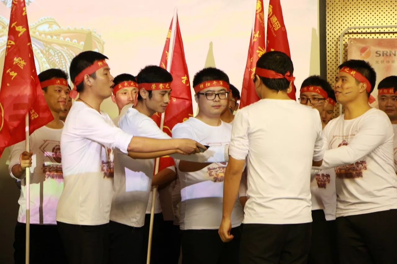 在呼喊公司活动口号的环节,每个部门,每个战士都在高喊口号,喊得嗓子都已沙哑:风起云涌,鹰击长空,人人锐士,唯我称雄!杀!杀!杀!在内外贸主管整队授旗环节,两位主管情绪异常高亢,声音都已经在颤抖,可是那颤抖的声音却振彻会场,激励士气,吓破敌胆。在两位军团长情绪的渲染下,各个队长也表现出大无畏的誓死精神,接过队旗,喝下“壮士断腕”一般的军令酒,骄傲的在会场挥舞自己队伍的旗帜。