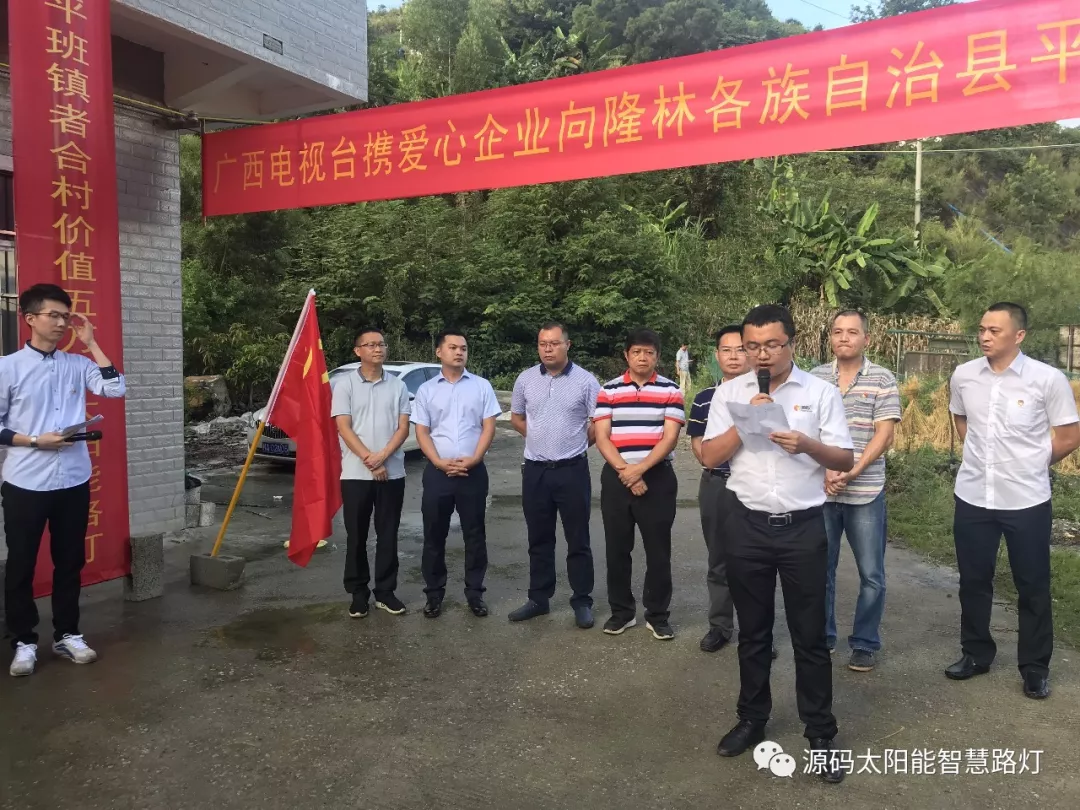 8月31日下午,隆林平班镇者合村路灯捐赠仪式如期举行,仪式现场,源码太阳能路灯刘总及源码广西区域经销商蔡总向者合村无偿捐赠太阳能路灯。