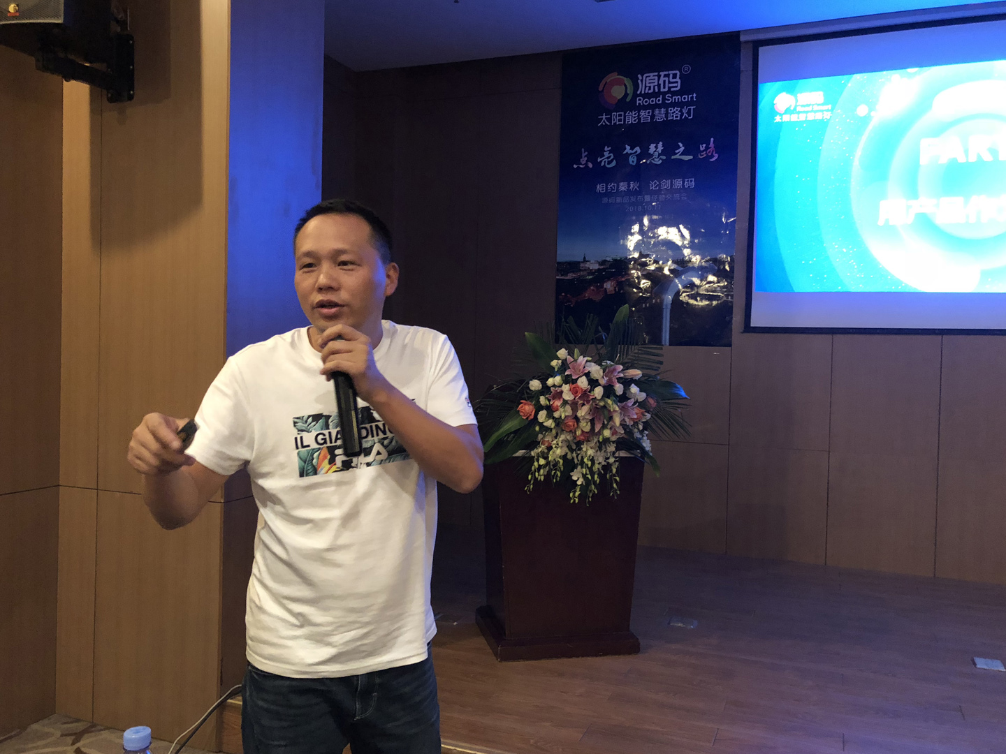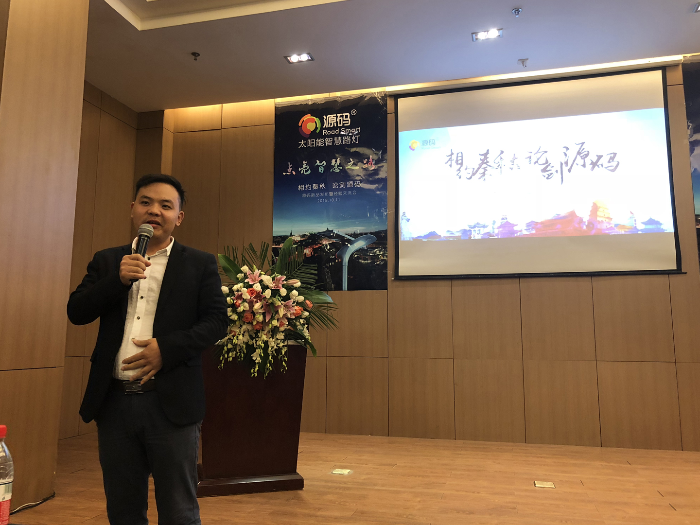 会议上,源码副总项佰川首先对行业的现状进行阐述,他表明行业“存量大、环境乱”,要在挑战中把握机遇,在逆境中获得新生。紧接着项总从源码的品牌、渠道、产品、服务等讲述源码在行业内的优势。随后项总又对源码未来作出了发展规划,并表示未来源码将继续坚持做品牌,将源码打造成“太阳能路灯先锋品牌”。项总精彩的发言让大家听的心潮澎湃,干劲十足。