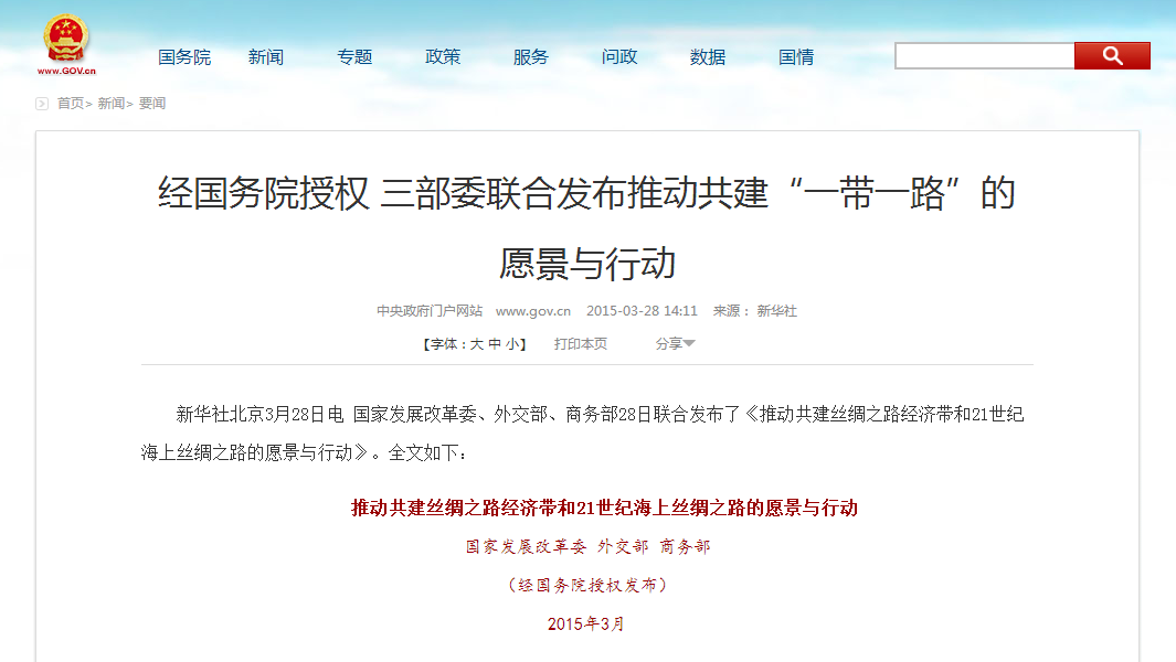 2015年3月28日,国家发展改革委、外交部、商务部联合发布了《推动共建丝绸之路经济带和21世纪海上丝绸之路的愿景与行动》。沿线国家基础设施建设达8万亿规模。