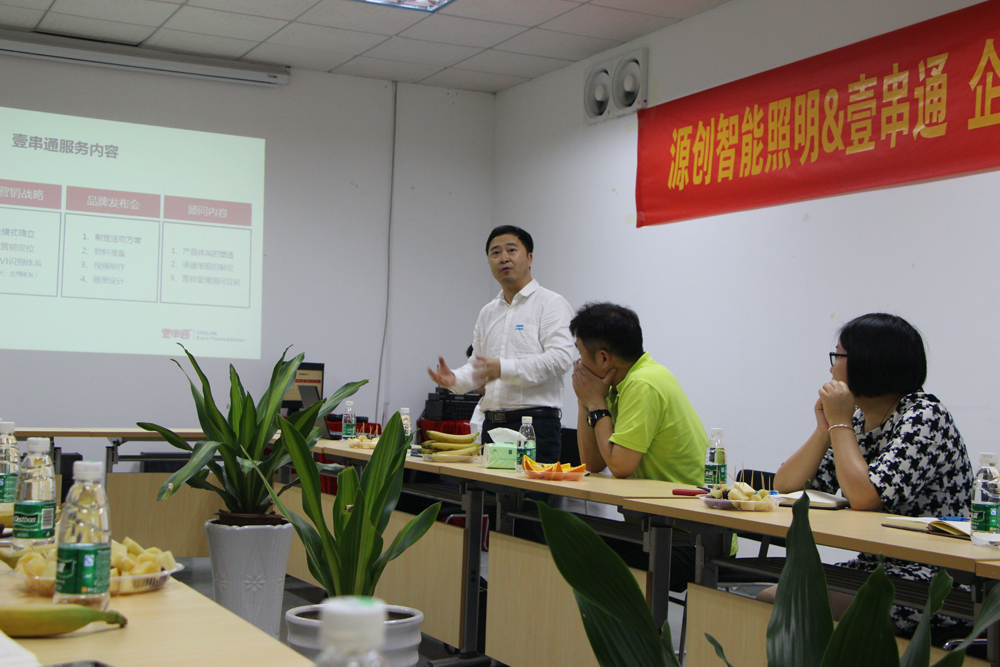 2016年4月14日,源创智能照明&壹串通企业战略及品牌营销项目合作会议正式启动,这一战略合作的启动标志着源创智能照明将以更具高度的营销视野去打造实力品牌路线,让源创在行业里有特殊的标签,有独特的品牌性格,变得与众不同,独一无二。