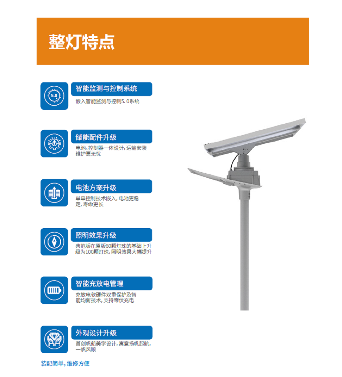 扬帆灯典范版作为扬帆灯的迭代新款,亮度和性价比均大幅提升,被广泛应用于新农村道路、旅游景区、公园、广场、居民小区、城市慢车道/窄车道等场景。